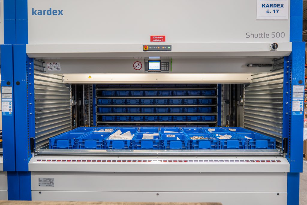 Kardexy umí díky naprogramování skladovat, a hlavně vydávat díly ve velmi krátkém čase, evidovat přijatý i vydaný materiál. A díky své konstrukci se šetří ve skladech tolik potřebná podlahová plocha, lidská práce, nemluvě o bezpečnosti provozu. „Tyhle věže jsou vlastně uzavřený systém, ve kterém jsou na obou stranách stroje vertikálně uloženy police s materiály pro výrobu. Vertikální sklad je plně ovládán skladovacím systémem DCIx WMS. Na základě požadavku z výroby „zavolá“ tento systém konkrétní polici, na které je požadovaný díl. Stroj pak automaticky doveze polici se skladovaným zbožím do výdejového otvoru, kde už na něj čeká obsluha, tedy skladník,“ vysvětluje Michal Peroutka.