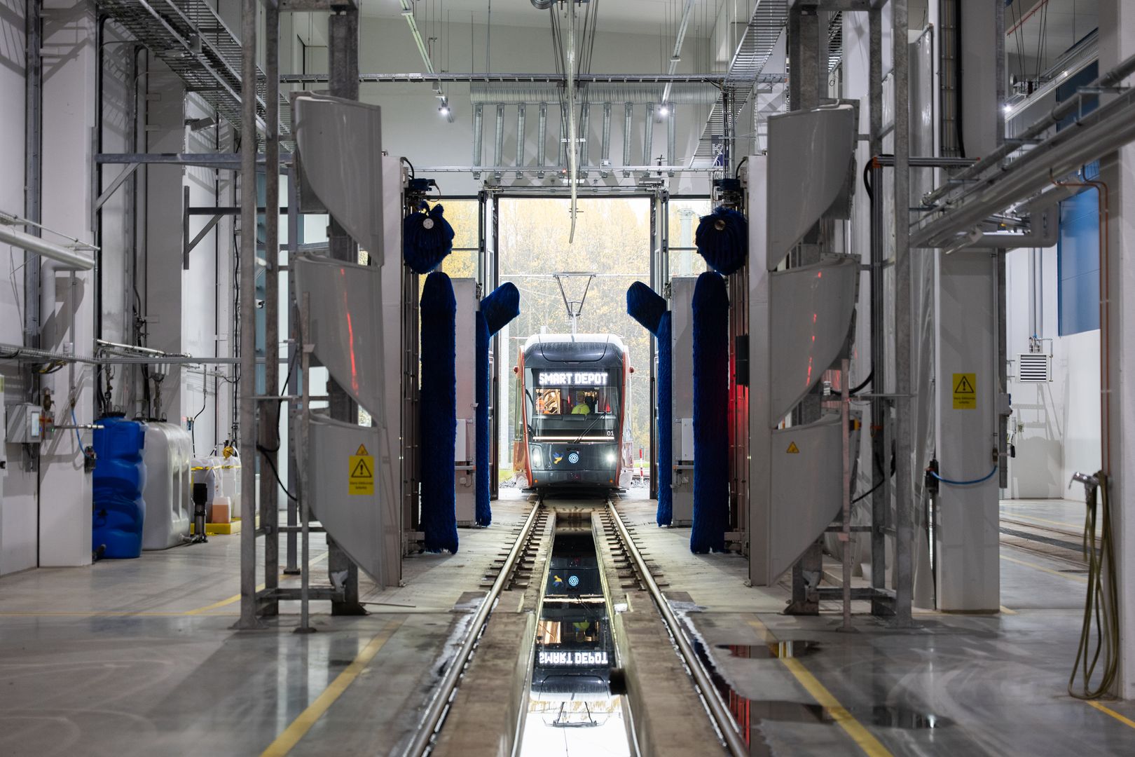 The Smart Depot system enables fully automated tram movements within the depot — from parking and washing to transfers to maintenance tracks. Thanks to a high degree of integration, the control of all activities is fully centralised.